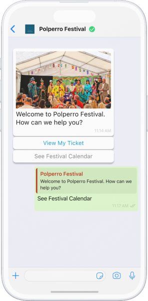 Revolutionize your entertainment sector events with WhatsApp. Send your event calendar and provide an effortless ticket purchasing experience